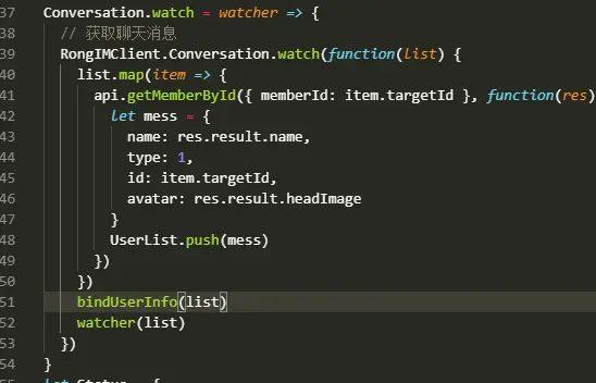 在service中创建一个空的数组,存放你的聊天列表let UserList = [],然后在获取聊天消息api中push每一个用户并且渲染,我的逻辑是拿到targetId后到自己后台去查这个用户的头像昵称