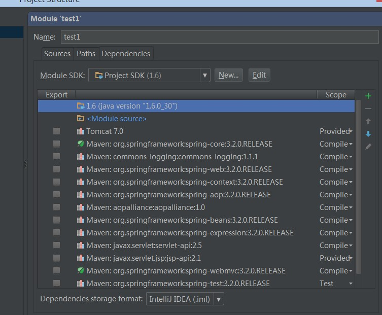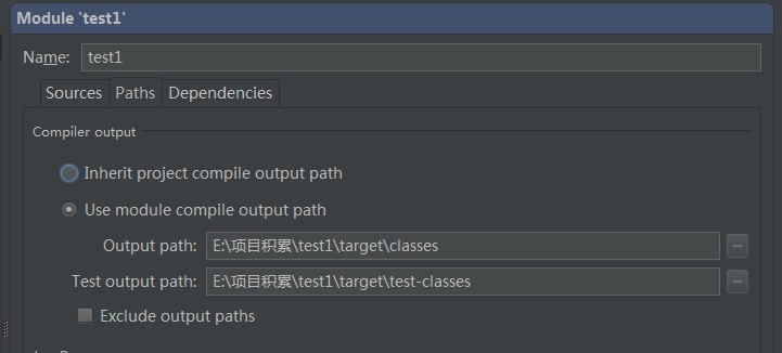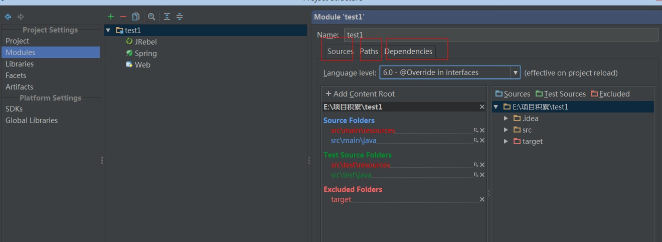 模块配置根目下 分为了三个标签:Sources—— Paths—— Depedencies