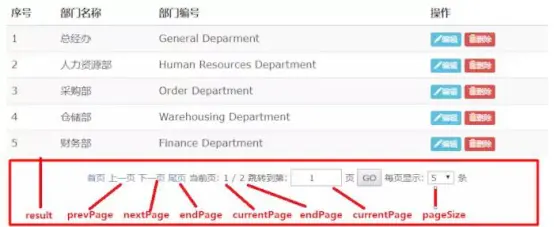 分页查询 需求分析:在列表页面中,显示指定条数的数据,通过翻页按钮完成首页/上一页/下一页/尾页的查询 数据分析: 通过观察,页面上需要显示下面的几个数据: 当前页:currentPage 页面大小:pageSize 总页数:totalPage 首页:1 上一页:prevPage 下一页:nextPage 尾页:endPage 总条数:totalCount 结果集:result