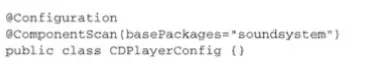 不过,组件扫描默认是不启用的。我们还需要显式配置一下Spring,从而命令它去寻找带有@Component注解的类,并为其创建bean