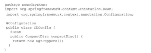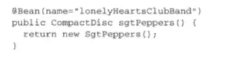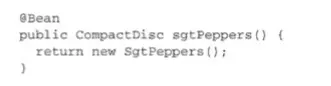 要在JavaConfig中声明bean,我们需要编写一个方法,这个方法会创建所需类型的实例,然后给这个方法添加@Bean注解