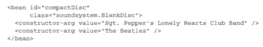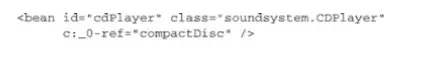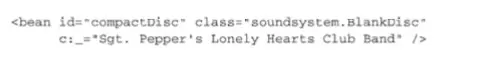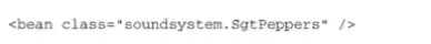 说明:1.创建一个bean的类是通过class属性指定的,要使用全限定名。 2、因为没有明确给定ID,所以这个bean将会根据全限定类名来进行命名;上述图中bean的id是“soundsystem.SgtPeppers#0”,其中“#0”是一个计数的形式,用来区分相同类型的其他bean。如果你声明了另外一个SgtPeppers,并且没有明确进行标识,那么它自动得到的ID将会是“soundsystem.SgtPeppers#1”。3、如果想为bean指定id,则通过id属性进行指定。