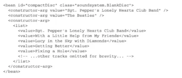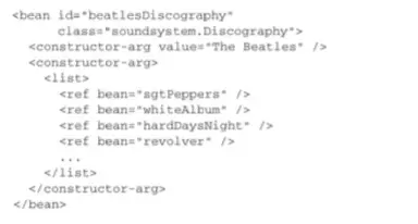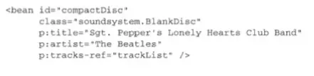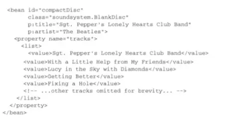现在,我们能够像使用其他的bean那样,将磁道列表bean注入到BlankDisc bean的tracks属性中: