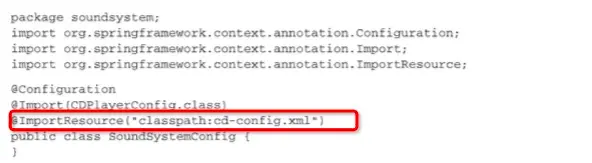 创建一个更高级的SoundSystemConfig,在其中使用@Import将两个配置类组合在一起