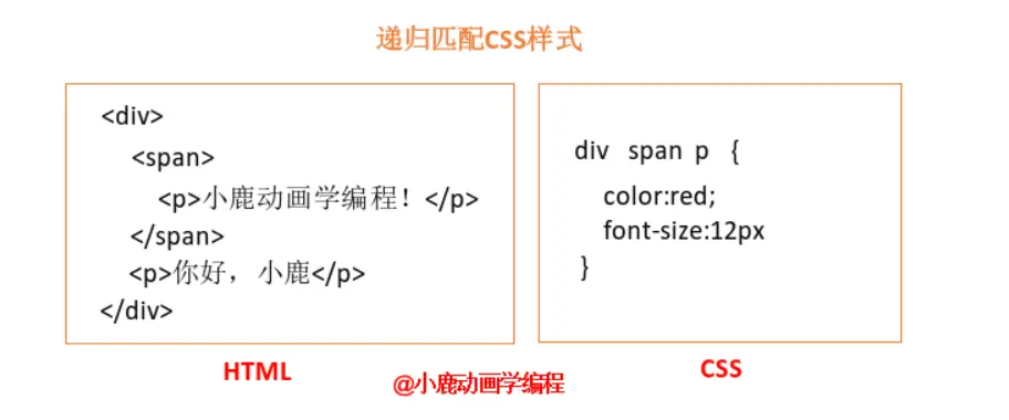 浏览器通过递归的方式 DOM 树为结点设置样式。通过先找到具体的标签,然后递归找到设置的上级标签,最后确定选择器选择的所选标签的样式。