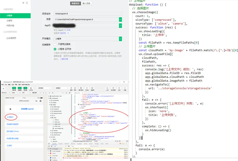 - 然后是上传图片功能的实现.详细的步骤写在注释中