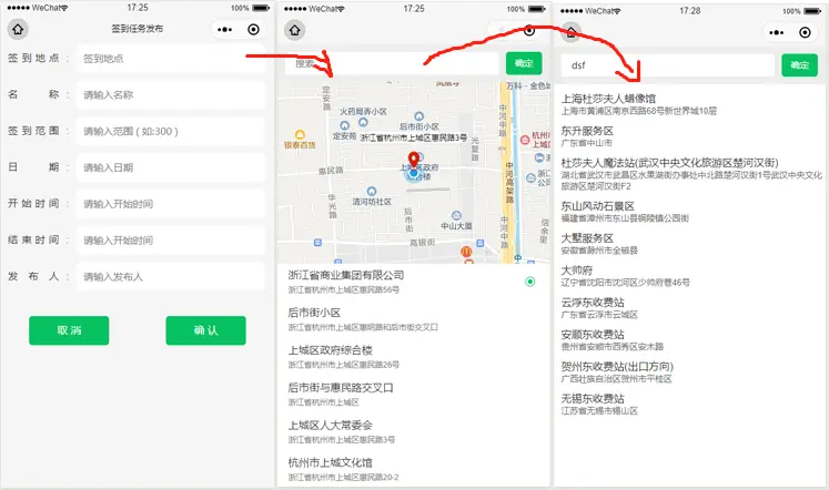 - 点击地点弹出地图,首先根据自身定位,并获取周边10个主要地点。