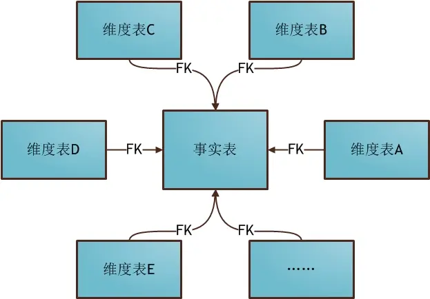 可以看出,星形模式的维度建模由一个事实表和一组维表成,且具有以下特点: