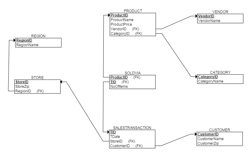 a. 维度PRODUCT可由关系PRODUCT,关系VENDOR,关系CATEGORY连接得到;