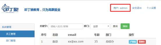 CheckLoginFilter cn.wolfcode.javaweb.web.filter.CheckLoginFilter needCheckURI /employee,/department CheckLoginFilter /* 有了该过滤器,用户就不能再没有登录的时候,直接访问相关资源了,做到了一个基本的安全控制 生成系统账户 当系统启动后,我们需要在用户表中存在一个最起码的管理员账户,这样,用户才能登录进来来管理整个系统 那么,如何实现在启动服务器的时候,完成这个需求呢? 其实解决方案很多,大家也都应该能想到 1.Servlet Servlet默认情况下是在第一次访问的时候执行初始化操作 但是也可以调整到启动服务器的时候,0 初始化Servlet的时候,会执行当前Servlet的init方法 所以,我们完全在该方法中来完成这个需求 2.Filter 过滤器的初始化就是在启动服务器的时候 和Servlet一样,初始化的时候会执行Filter的init方法 所以,也可以在Filter的init方法中完成该需求 3.Listener 前面学习过WEB中的监听器,知道他能够对作用域(创建/销毁)和作用域中的属性(添加/删除/修改)进行监听 我们的需求是,在启动服务器的时候创建默认账户 而在启动服务器的时候,application作用域对象会在这个时候创建 综上,我们可以创建一个application作用对象监听器,在创建该对象的时候,完成默认账户的创建 上面三种方式都能完成我们的需求,但最终从责任分离原则方面考虑,我们应该选择使用监听器,实现如下 创建监听器 public class SystemManagerCreaterListener implements ServletContextListener { private IEmployeeService service = new EmployeeServiceImpl(); public void contextInitialized(ServletContextEvent servletContextEvent) { //查询系统默认账户是否存在,如果不存在,创建一个默认账户 Employee manager = service.selectSystemManager(); if(manager==null){ manager = new Employee(); manager.setName("admin"); manager.setPassword("1"); manager.setAdmin(true); service.save(manager); } }public void contextDestroyed(ServletContextEvent servletContextEvent) {