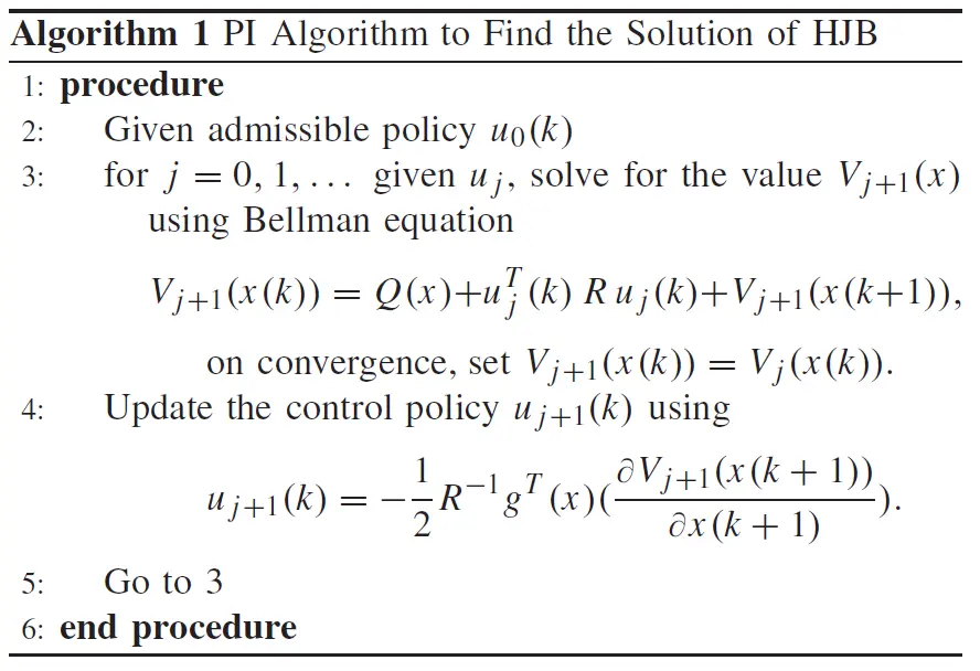 下面的PI算法用动态规划方法解出最优控制u