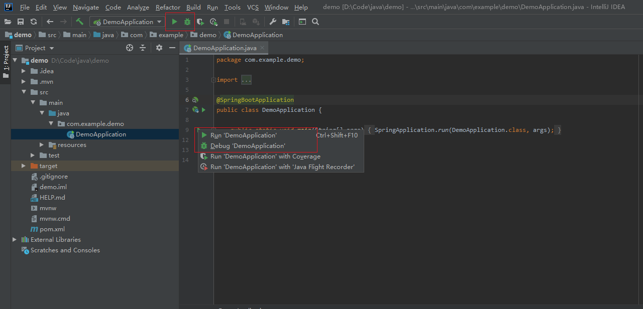 SpringApplication.run(DemoApplication.class, args);