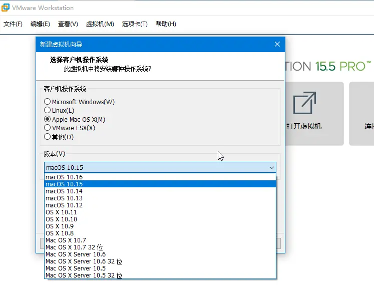 安装系统前应该先把VMware Workstation更新到最新版本,不然不会有macOS 10.15系统选项。Unlocker解锁和新建系统这些基本操作请参考下面的Mojave部分,这里就不反复写了,其他类似的也有很多教程,如:blog.csdn.net/longji/arti…。