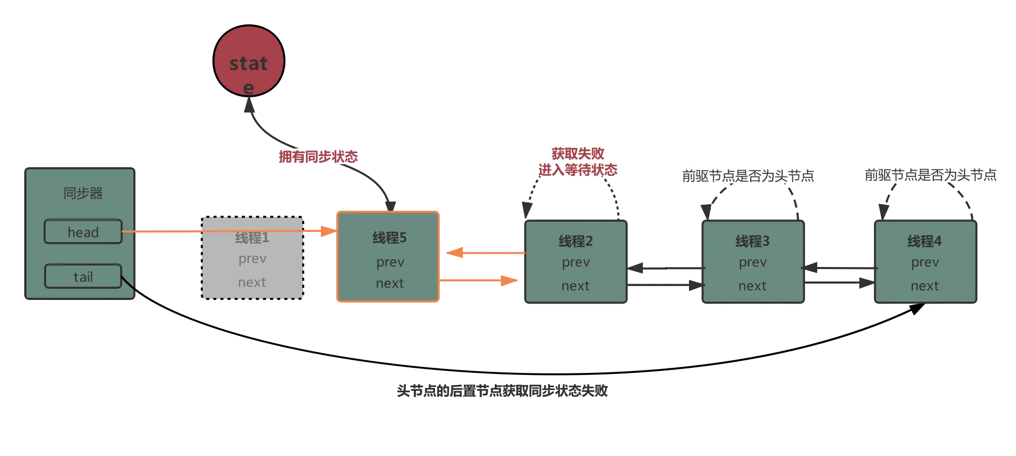 - 当线程释放同步状态,会唤醒后继节点来获取同步状态