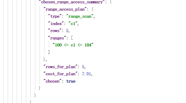 在对表进行explain select * from abc where c1 between 100 and 104;和explain select * from abc where c1 in (100,101,102,103,104);的时候,他们的执行计划都是一样的。(不贴图了)