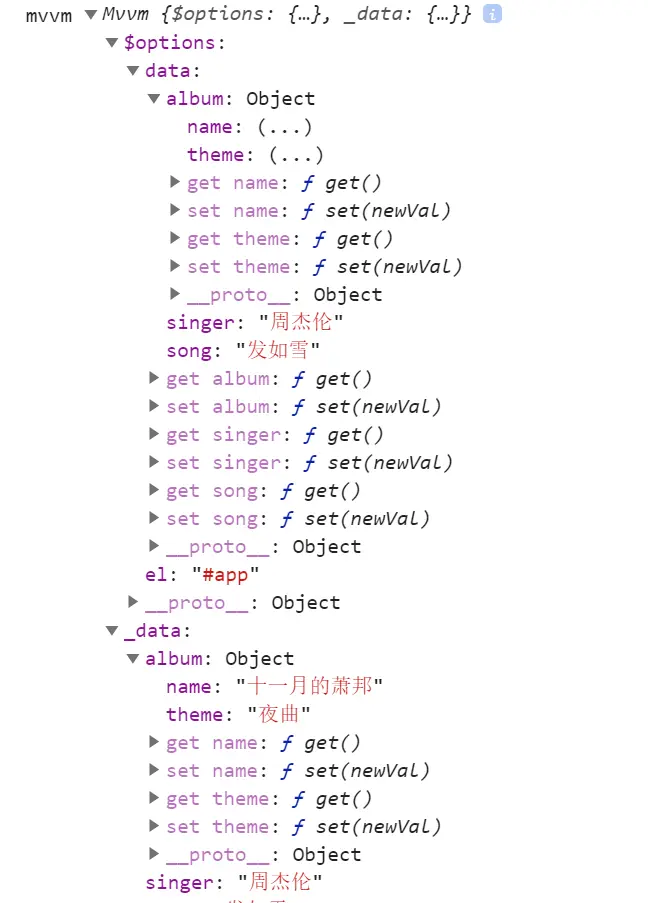 obj.music = '夜曲'; // 调用set设置新的值
