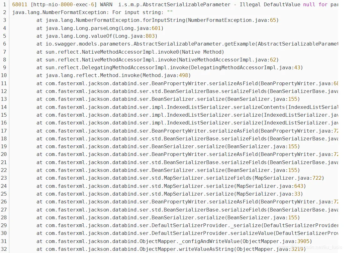 在做后台项目接口开发时,使用Swagger测试接口,总是会报异常。SpringBoot项目中使用Swagger作为文档工具,每次在使用它的文档时,IDE工具的控制台都会打印出如下异常,会让我们感觉很不爽。 **