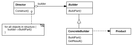 - 将各个部件的建造请求委派到具体的建造者(ConcreteBuilder);