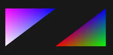 三角形的方式绘制时每个三角形之间都是互相独立的,如果以三角形的方式绘制一个矩形那么需要绘制两个三角形,提供6个顶点。
