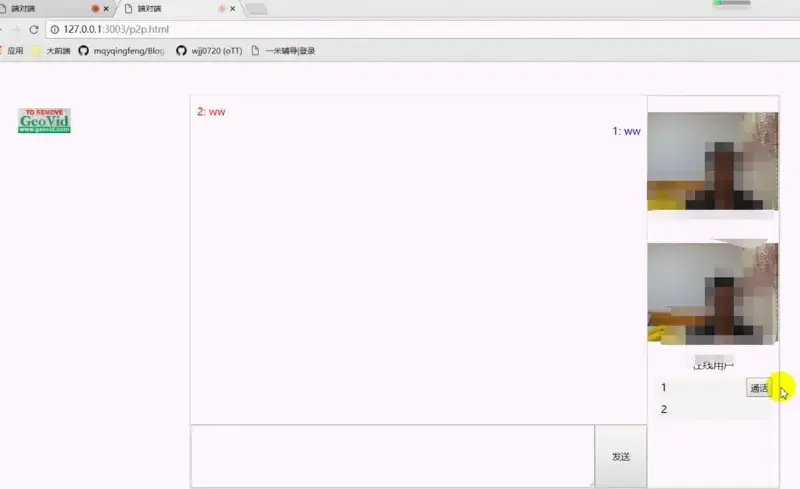 # 访问 127.0.0.1:3003/p2p.html 演示局域网端对端视屏