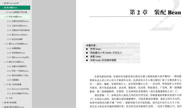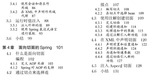 第2章更为详细地介绍 DI,展现应用程序中的各个组件(bean) 如何装配在一起。这包括基于XML装配、基于Java装配以及自动装配。