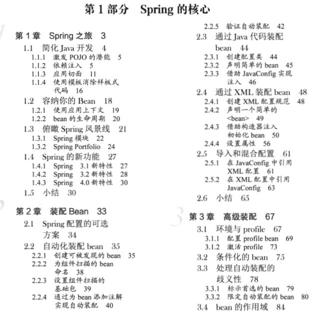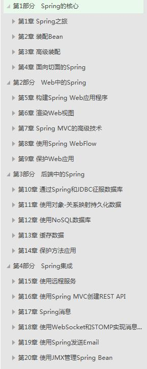 在第1部分中,读者将会学习到Spring容器、依赖注人(dependency injection,DI)和面向切面编程(aspect-oriented programming, AOP),也就是Spring框架的核心。这能让读者很好地理解Spring的基础原理,而这些原理将会在本书各个章节都会用到。