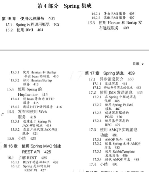 本书分为4部分。第1部分介绍Spring框架的核心知识。第2部分在此基础上介绍如何使用Spring构建Web应用程序。第3部分告别前端,介绍如何在应用程序的后端使用Spring.第4部分描述如何使用Spring与其他的应用和服务进行集成。