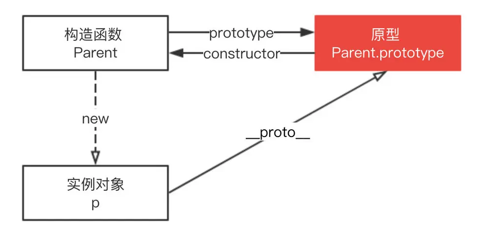 这里就扯到原型链了,instanceof其实是在原型链上寻找构造函数的原型和实例对象的关系,如果实例对象通过__proto__指向构造函数的原型(及Parent.prototype === p.__proto__),则返回true。