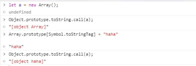 但是但是这个方法其实也有缺陷的!让我们瞅瞅ES6提出的Symbol.toStringtag符号,这个符号是所有对象都具有的属性,它的功能是定义对象[object Xxx]中的Xxx。