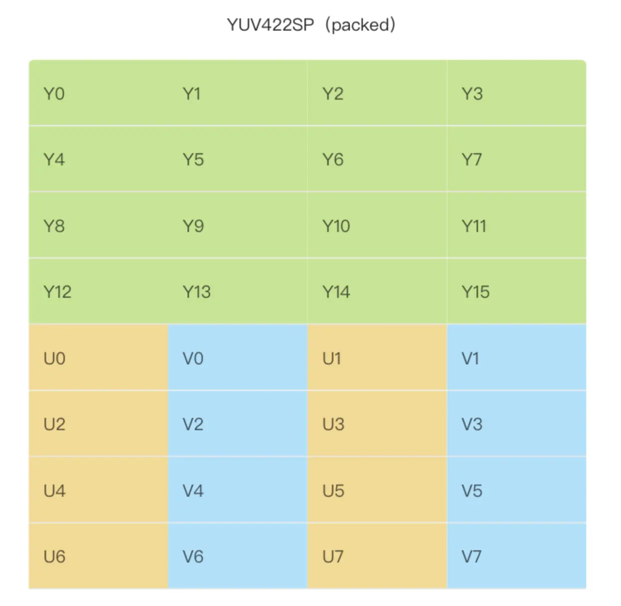 YUV422SP(packed,每两个 Y 共用一组 UV 分量):