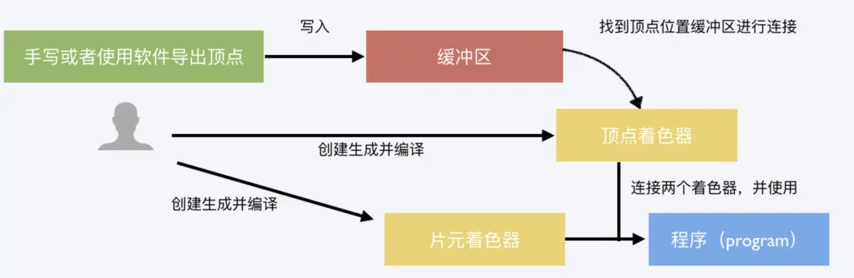 所有的着色器创建并编译后会处在一种游离的状态,我们需要将他们联系起来,并使用(可以理解成 document.body.appendChild(f),添加到 body,dom 元素才能被看到,也就是联系并使用)。