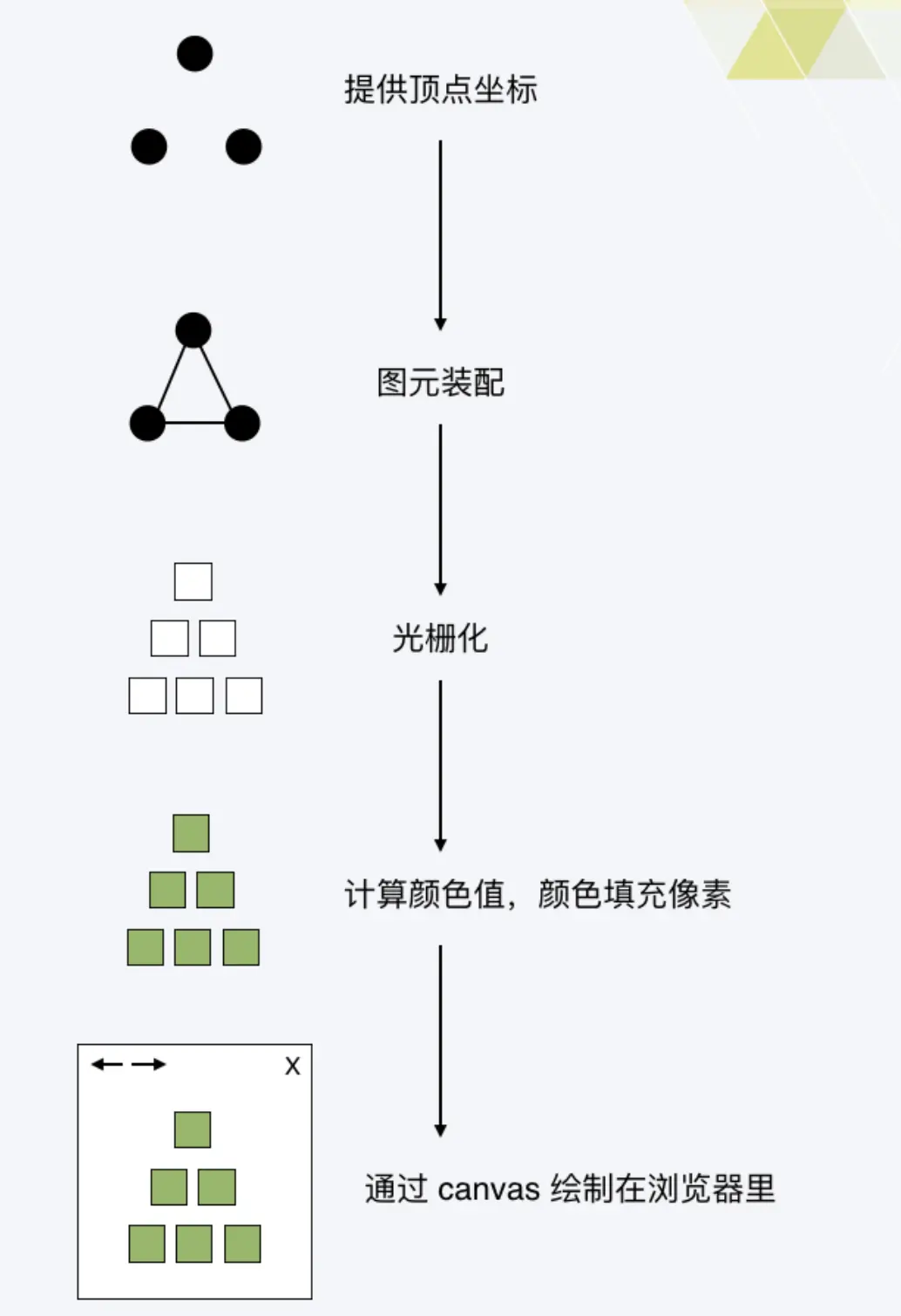 总结 WEBGL 绘制流程可以归纳为以下几点: