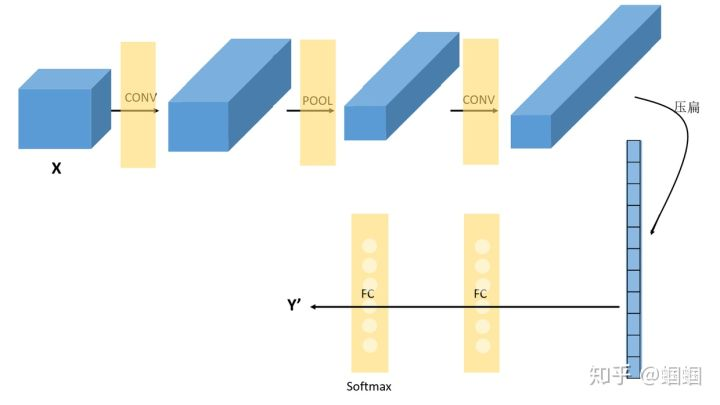 - 注:在经过数次卷积和池化之后,我们 最后会先将多维的数据进行“扁平化”,也就是把 (height,width,channel)的数据压缩成长度为 height × width × channel 的一维数组,然后再与 FC层连接,这之后就跟普通的神经网络无异了。