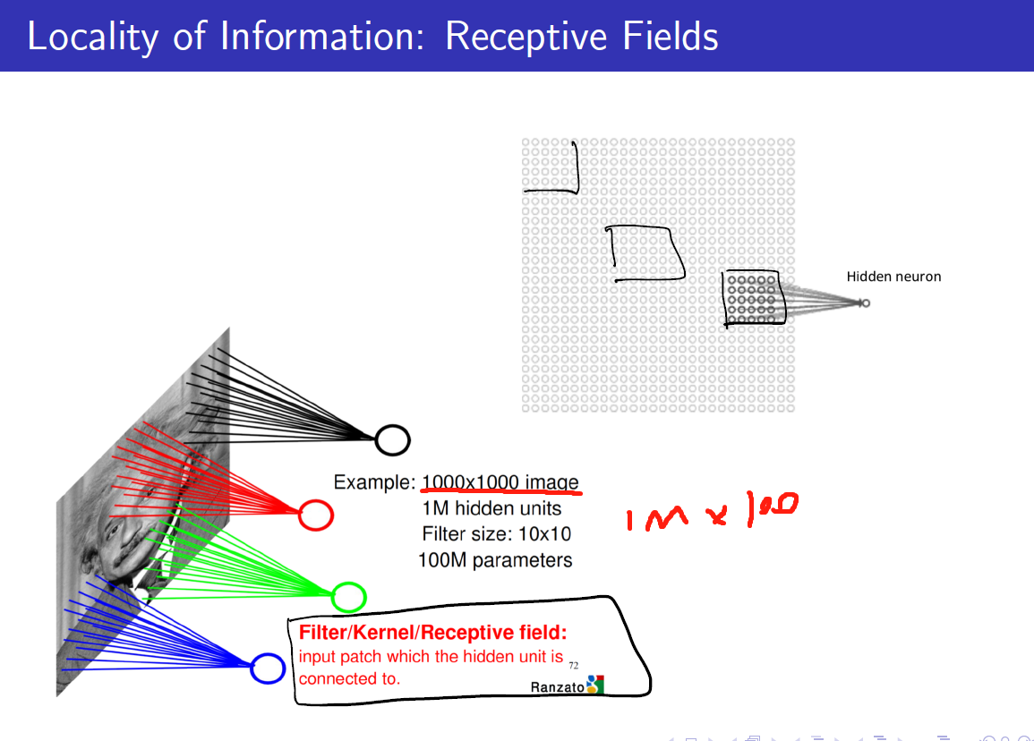 由卷积的操作可知,输出图像中的任何一个单元,只跟输入图像的一部分有关系: