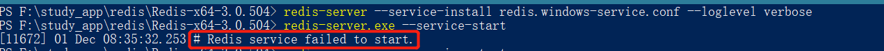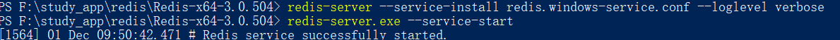 - redis-server --service-install redis.windows-service.conf --loglevel verbose ,在这之前先要在reis配置到环境变量中 例如我的安装路径是 F:\study_app\redis\Redis-x64-3.0.504 变量设置好后在安装目录中使用PowerShell