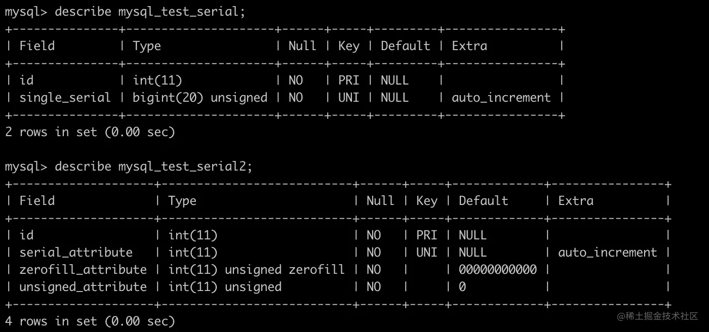6.“serial default value“ 是 ”NOT NULL AUTO_INCREMENT UNIQUE” 的别名