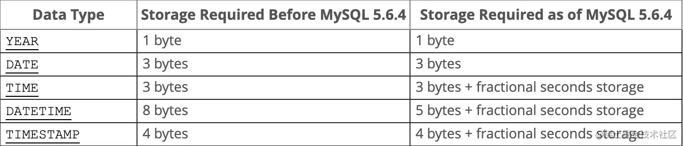 fractional seconds strorage表示小数点后的数字占用的字节
