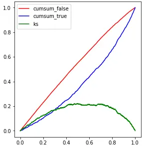 通过混淆矩阵我们可以给出各指标的值: 查全率(召回率,recall):样本中的正例有多少被预测准确了,衡量的是查全率,预测对的正例数占真正的正例数的比率: 查全率=TP / (TP+FN) Precision:针对预测结果而言,预测为正的样本有多少是真正的正样本,衡量的是查准率,预测正确的正例数占预测为正例总量的比率: Precision=TP / (TP+FP) Accuracy:反应分类器统对整个样本的判定能力,能将正的判定为正,负的判定为负的能力,计算公式: Accuracy=(TP+TN) / (TP+FP+TN+FN) 但是往往准确率并不能直观地反应模型的预测能力: 例如一个集合里有100个样本,99个正样本和1个负样本,全预测为正样本都有99%的准确度,但是没有任何预测能力,后续的KS和AUC可以弥补这些不足。
