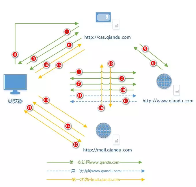 上图是3个登录场景,分别为:第一次访问www.qiandu.com、第二次访问、以及登录状态下第一次访问mail.qiandu.com。