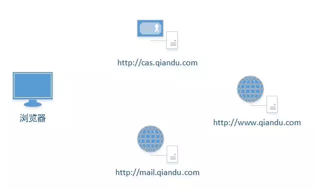部署项目时需要部署一个独立的认证中心(cas.qiandu.com),以及其他N个用户自己的web服务。