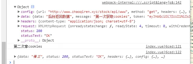vue项目在本人电脑启动访问路径为:www.zhaoqiren.xyz/stock/api/www下后端接口可以接收到接口返回的数据。