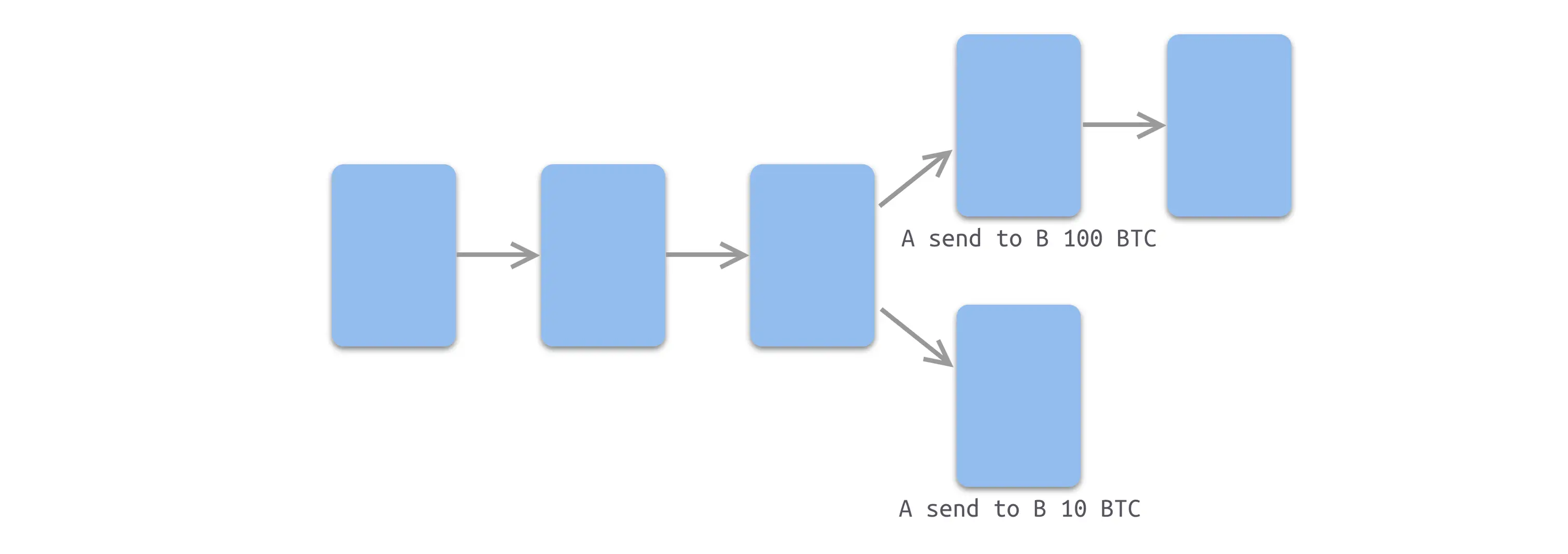 - A 向 B 转账 10 比特币