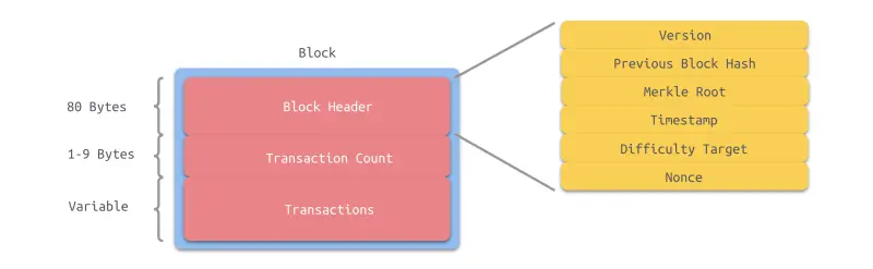 其中,Nonce、Difficulty Target、Timestamp 会用于挖矿过程。