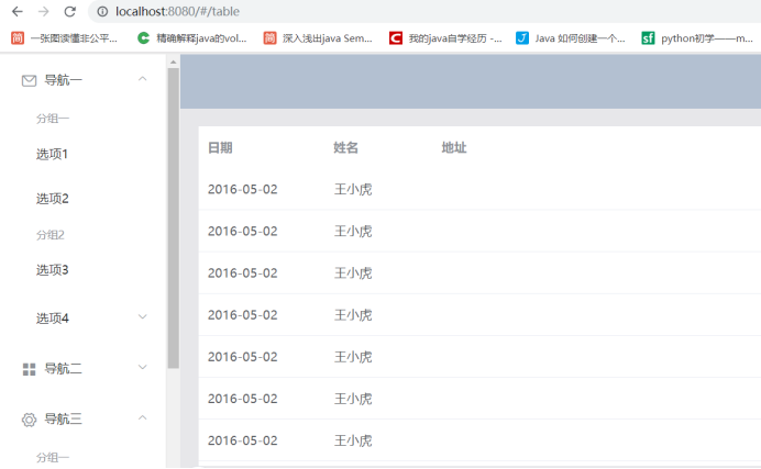执行 npm run dev 访问 http://localhost:8080/#/table出现table页面: