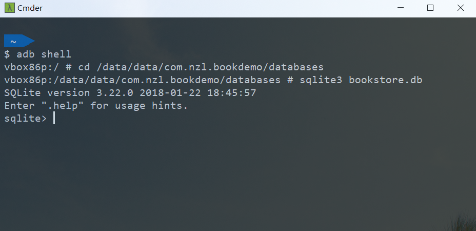 再进入自己APP的database目录,然后输入sqlite3 database也就是[sqlite3 数据库名字],如图所示