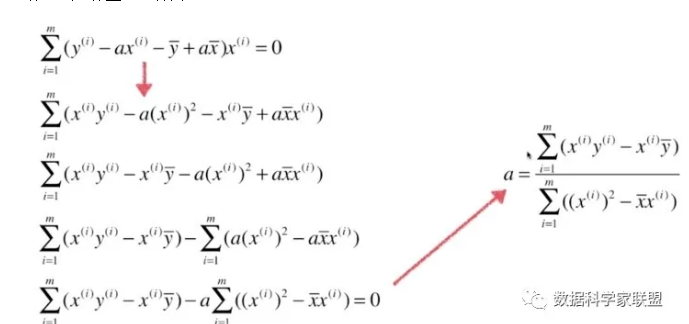最终我们通过最小二乘法得到a、b的表达式: