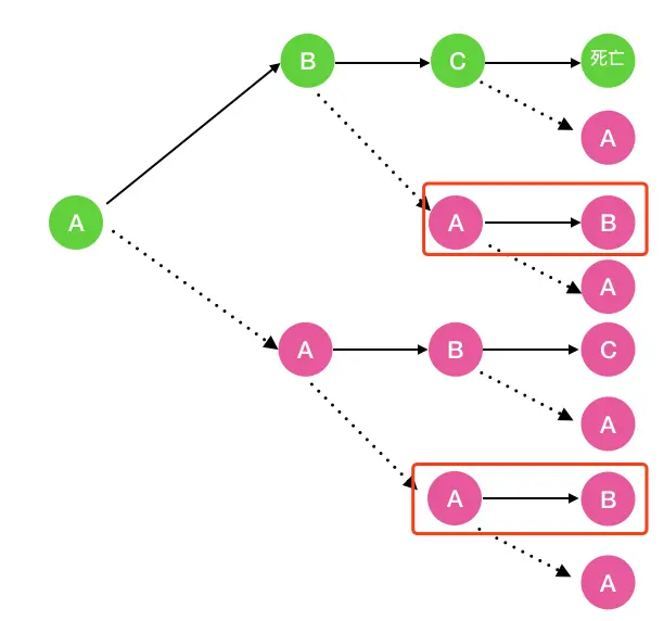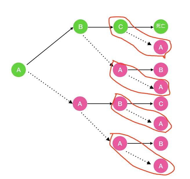 2.接下来寻找问题与子问题间的关系(即递推公式) 首先我们看一下一个细胞出生到死亡后经历的所有细胞分裂过程