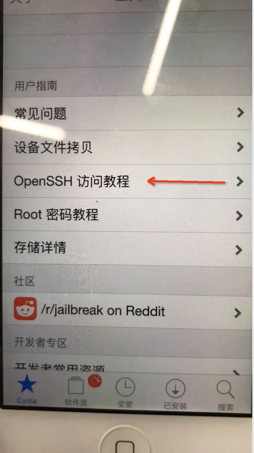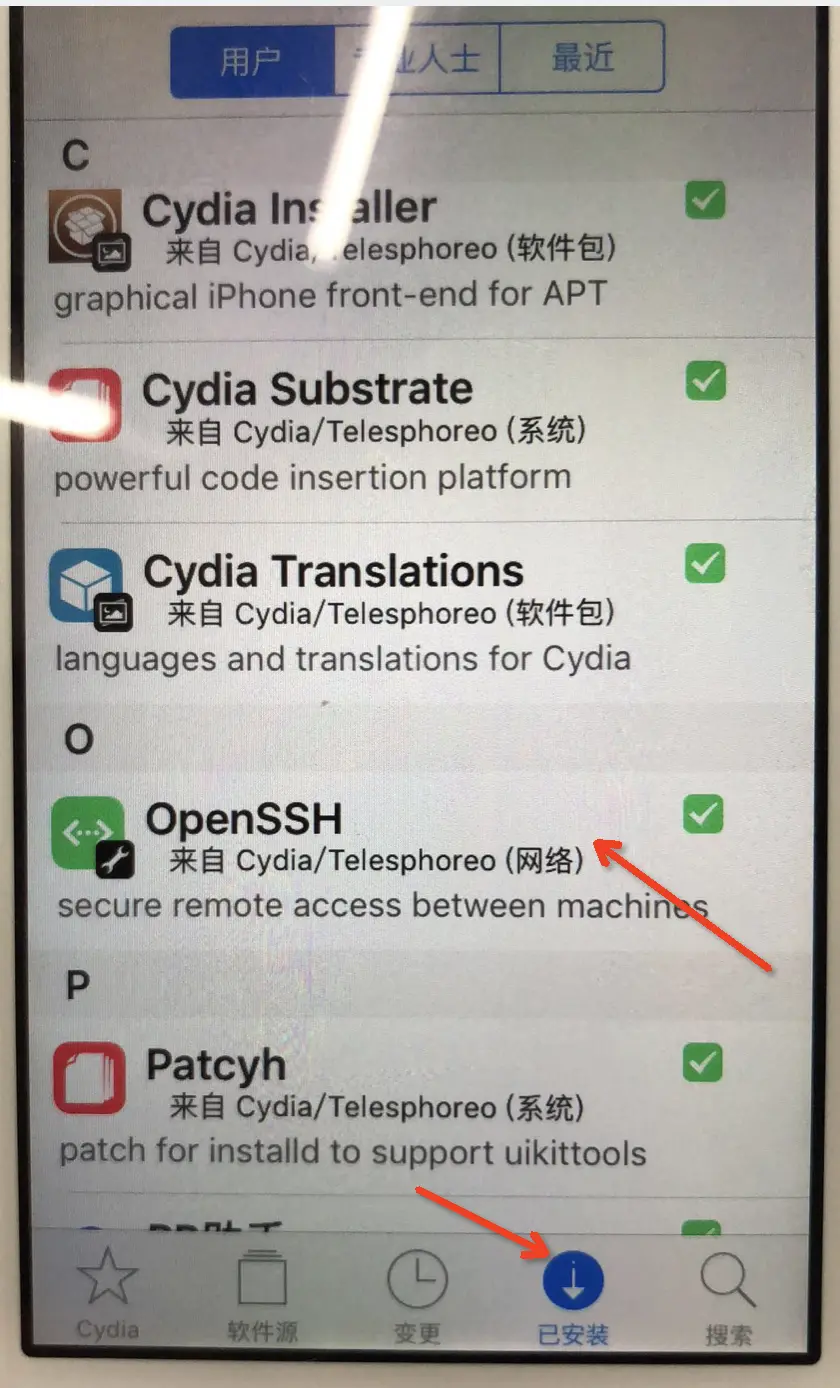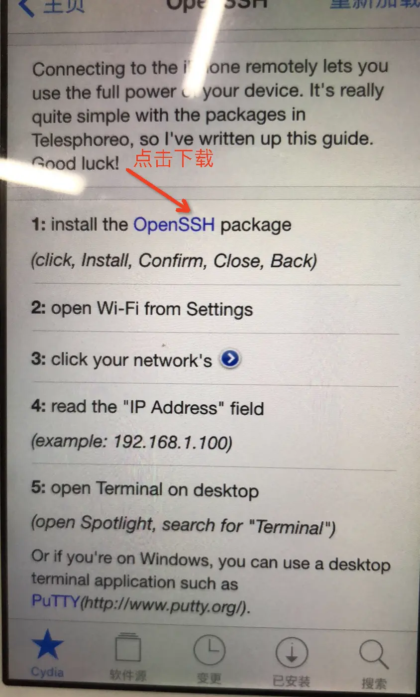 4.3 打开越狱设备的Cydia工具,下载Open SSH