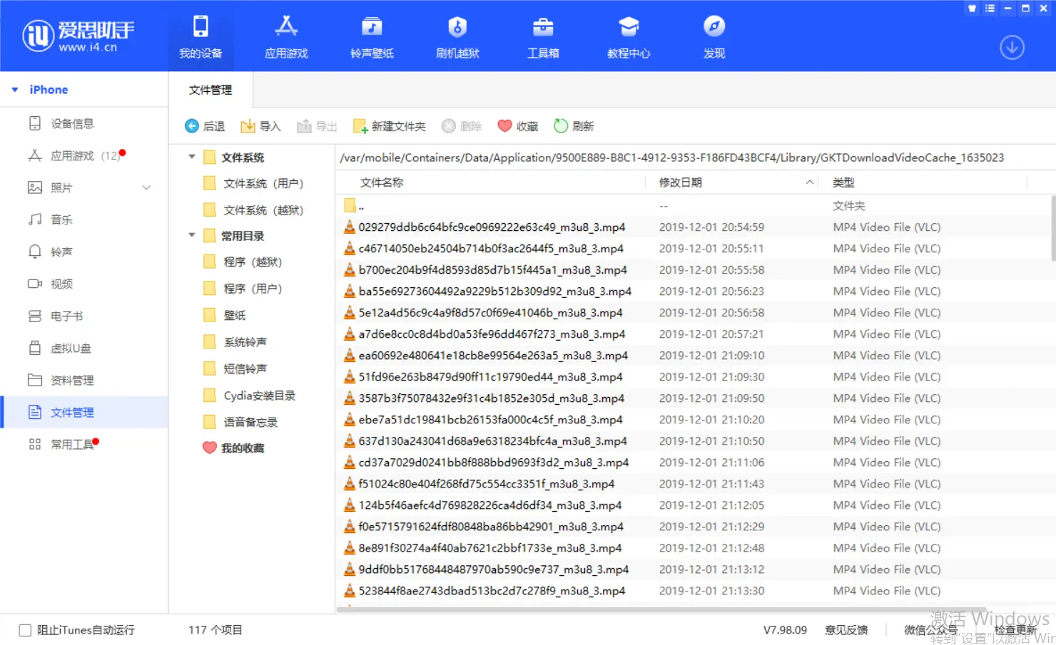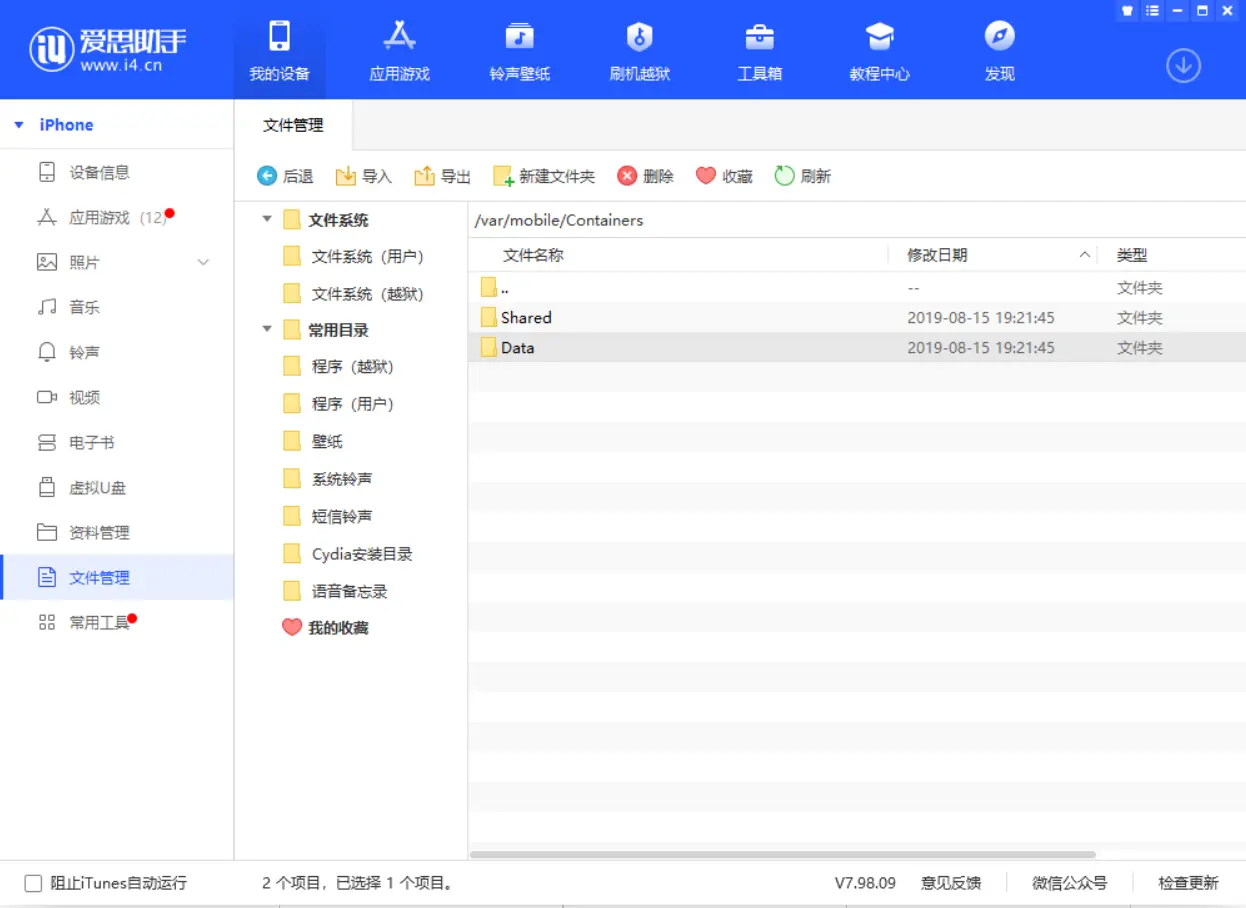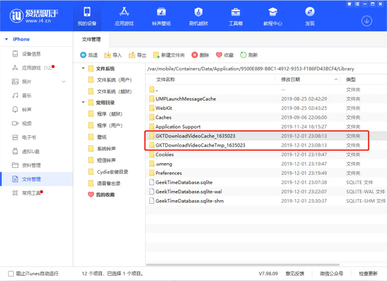 2. 根据上面文章的路径, 在爱思助手内寻找同样的路径:
