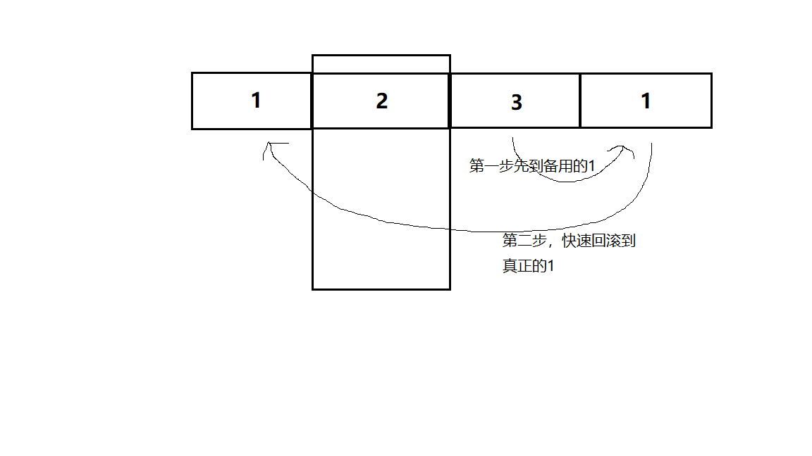 答:核心思想是利用视觉上的感觉,在用户无感的情况下切换回去,也就是快速回滚。为了达成这个目的,就是在最后一个轮播图的后面加上第一个轮播图,当从最后一个切换到第一个时,先切换到备用的第一个,然后快速回滚到真正的第一个轮播图。第一个同理,可能有点绕,可以看图理解: